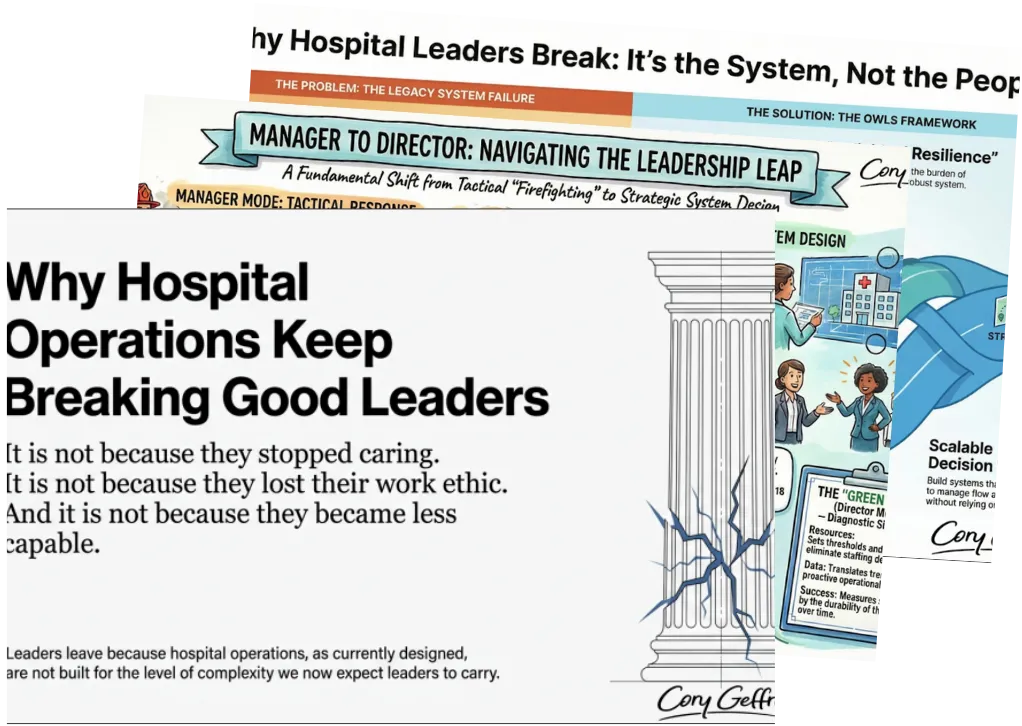 Healthcare OWLS is built to give hospital operators clear structure, disciplined sequencing, and practical decision models so they no longer have to rely on heroics to hold their systems together.